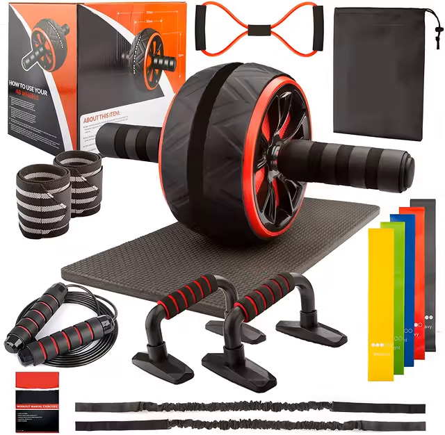 17 in 1 home gym set, fitness training equipment, ABS Ab wheel roller and exercise mat made of EVA and plastic for Yoga training.